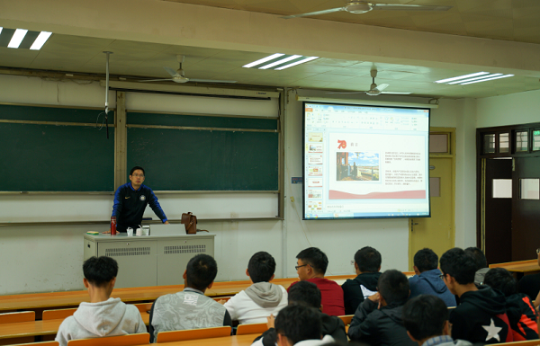 王老师结合自身感受从新中国成立以来党对中国道路的探索与创新、取得的发展成就、探索中国道路的经验和意义三个方面,透过真人真事生动地展示了新中国成立70年来的强国之路。王老师还深刻总结了新中国成立70周年的重要启示,指出如今中国特色社会主义进入新时代,站在新的历史起点,要铭记历史,不忘初心,继续奋斗,坚持习近平新时代中国特色社会主义思想的主指导思想,在党的领导下不断将改革开放的伟大事业推向新的高度。
