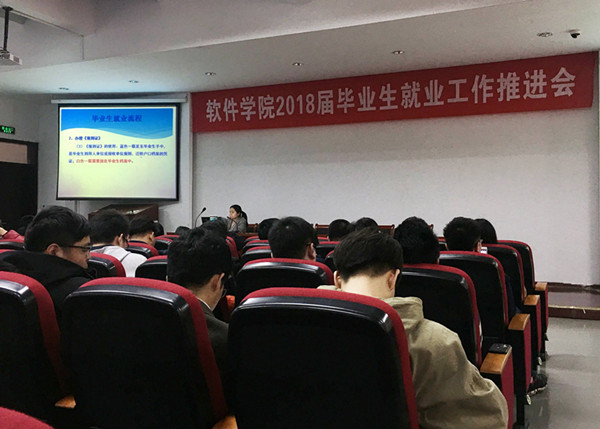 为推进2018届毕业生就业工作,帮助毕业生更好地把握就业节奏。3月13日下午,必赢线路检测3003no1在大学生活动中心报告厅举办2018届毕业生就业工作推进会。参加会议的有毕业班辅导员、班主任和2018届全体毕业生,会议由软件学院就业干事邵彦婷主持。