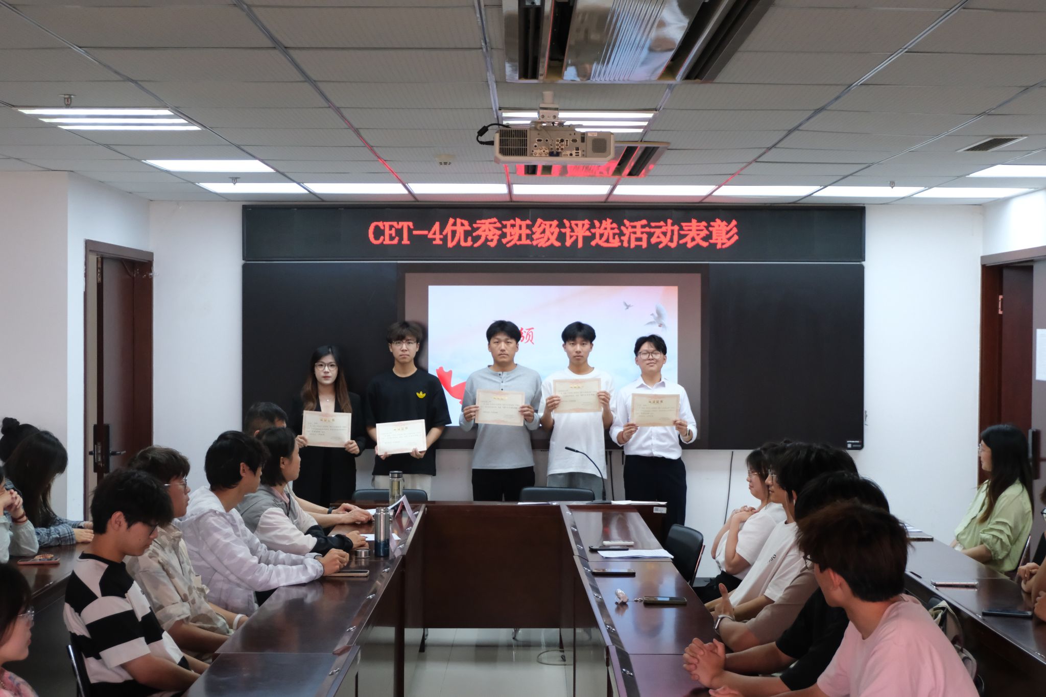 为进一步巩固学风建设成效,树立优秀榜样,不断激发学生学习积极性和主动性,我院于5月14日在科技楼2-423举办新新生“CET-4优秀班级”评选表彰大会。学工办主任张理航和24级辅导员殷燕出席本次会议。2024级全体主要班委参加会议。