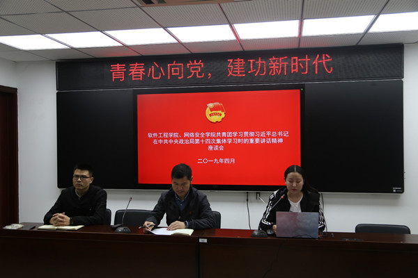4月26日晚,必赢线路检测3003no1、网络安全学院在423会议室学习贯彻习近平总书记在中共中央政治局第十四次集体学习时的重要讲话精神。团总支书记张理航,孙垒老师出席本次会议,全体团干部、学生党员代表等参加了本次活动,会议由团总支副书记李文珏主持。