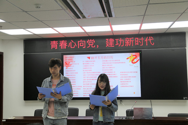 会上,全体与会人员起立合唱团歌。优秀学生干部夏雨欣、预备党员陈赛灵分享了自己的五四学习心得,学生代表袁欣伟、张倩楠诗朗诵《翻开五月的月历》。