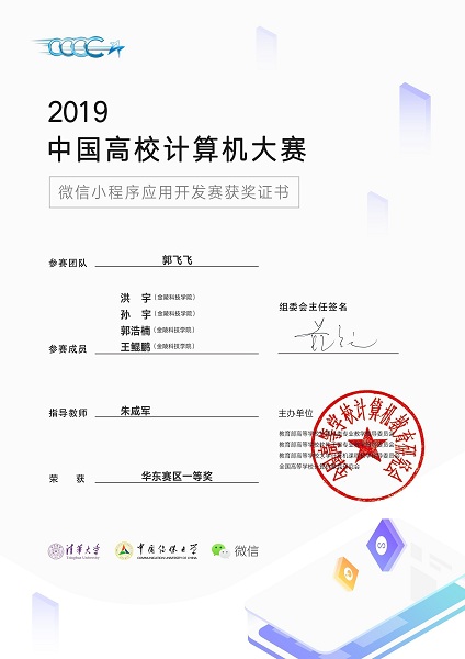 8月15日,2019 中国高校计算机大赛——微信小程序应用开发赛在广州华南理工大学(大学城校区)落下帷幕,必赢线路检测3003no1、网络安全学生在大赛中荣获华东赛区一等奖。