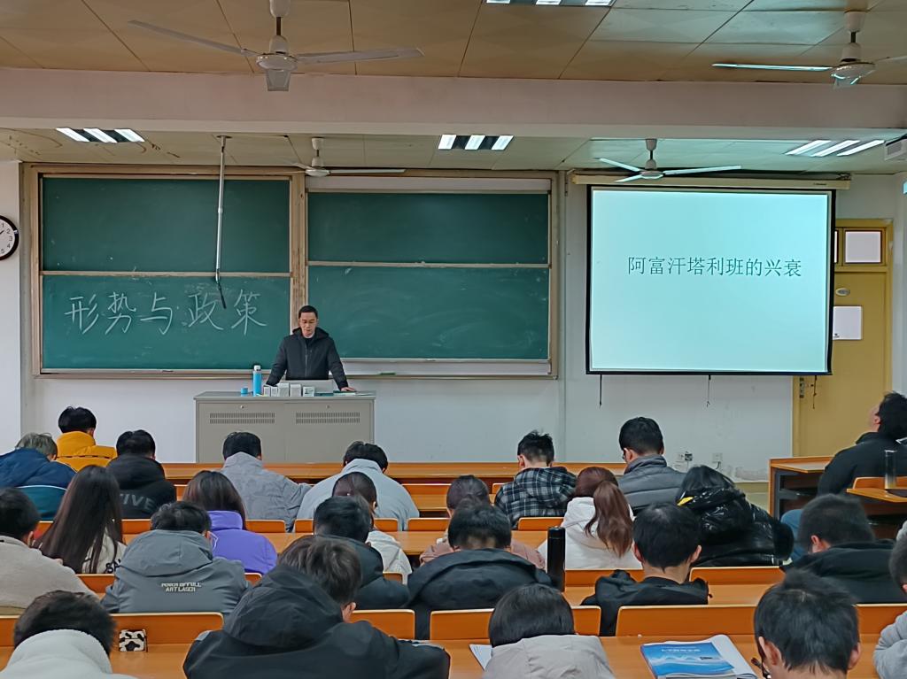 12月15日下午,必赢线路检测3003no1于教学楼1号楼1532教室举办了以“阿富汗塔利班的兴衰”为主题的形势与政策讲座。本次讲座邀请了马克思主义学院陈光连教授为主讲嘉宾。