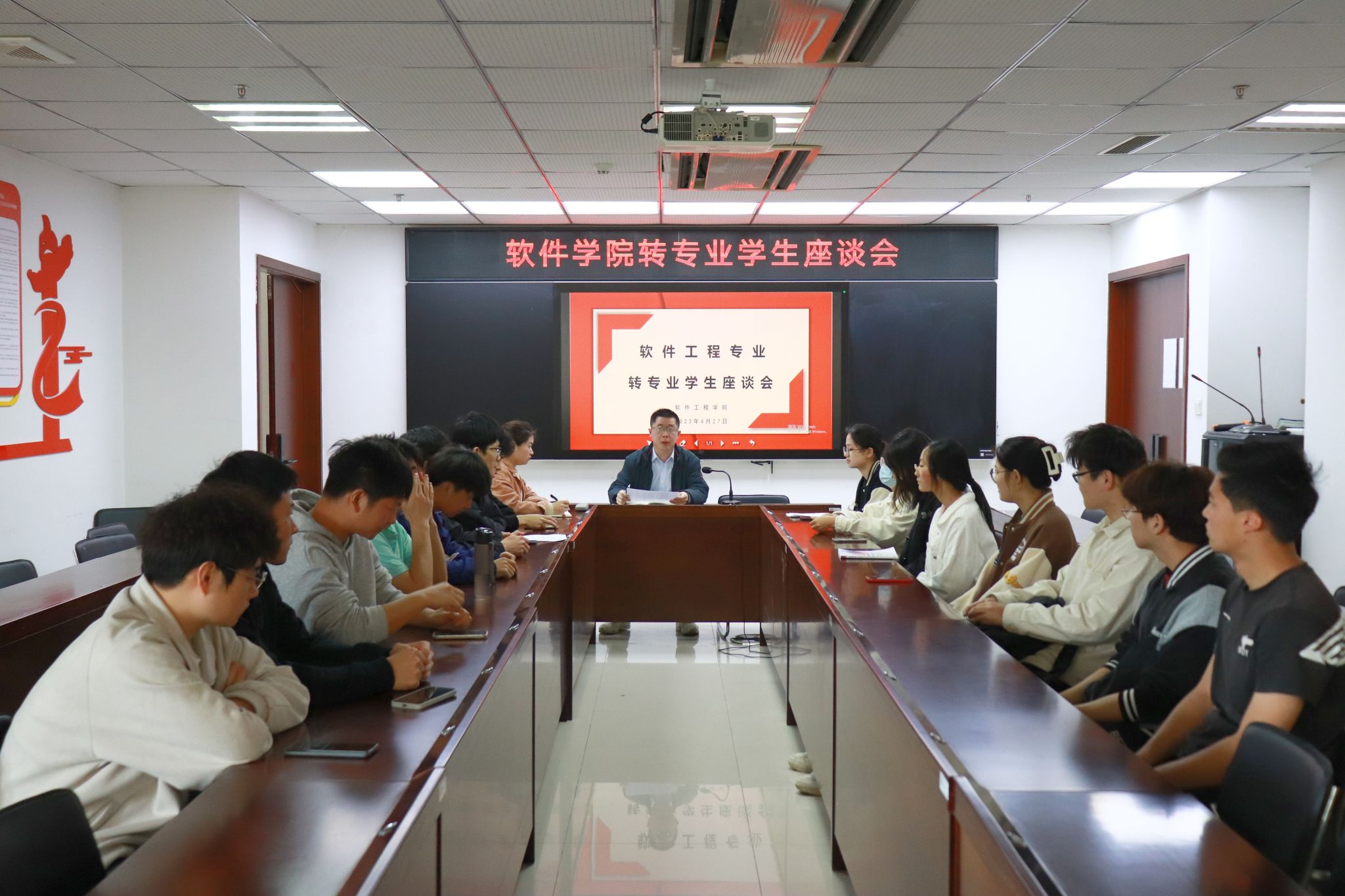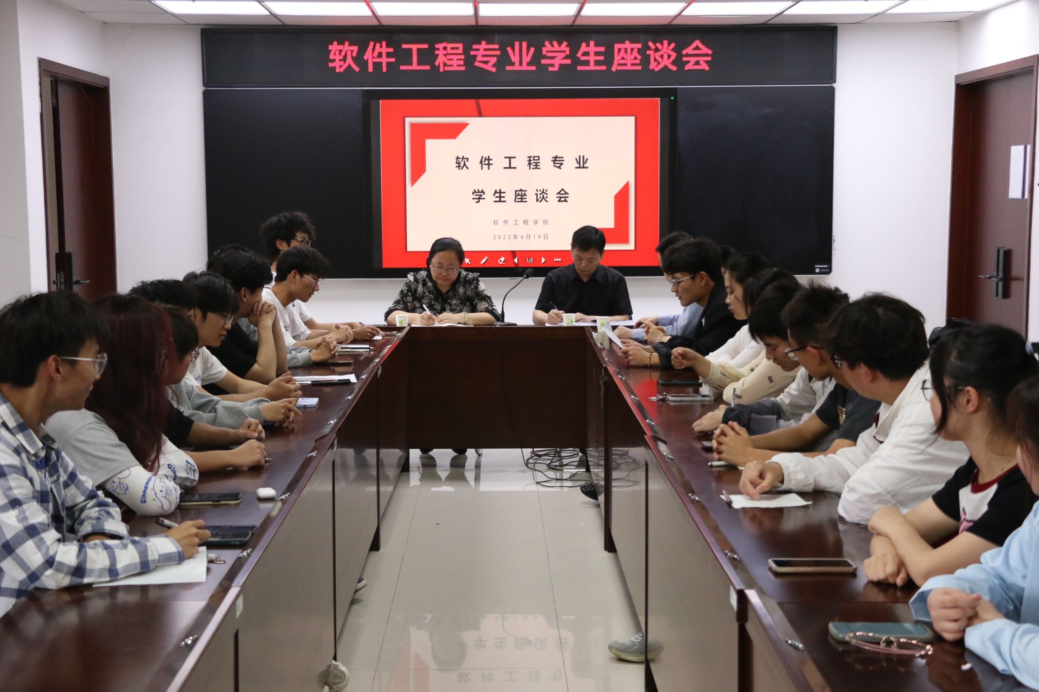 为加强软件工程专业建设,提升就业质量、针对专业认证和教学评估要求抓好学风建设,近日,必赢线路检测3003no1分别召开了各年级在校生、转专业、退伍等学生代表座谈会,了解学生学习生活情况,倾听他们的心声和诉求。院党委副书记徐斌、副院长胡勇、各系主任、辅导员和学生代表参加了此次座谈会。