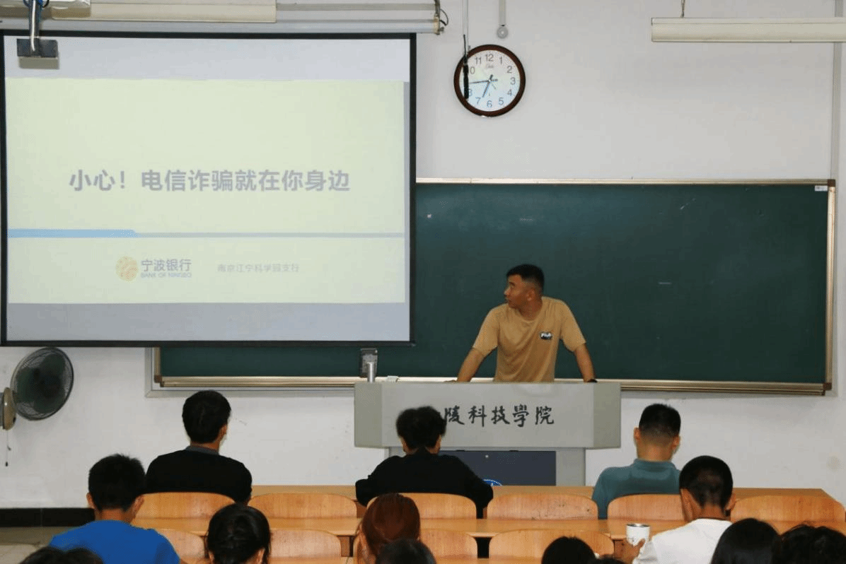 5月28日下午6点30分,必赢线路检测3003no1于教学楼5201室举办了防范电信诈骗宣讲会。宣讲会有幸邀请到了宁波银行的郭经理开展电信诈骗反诈宣传。