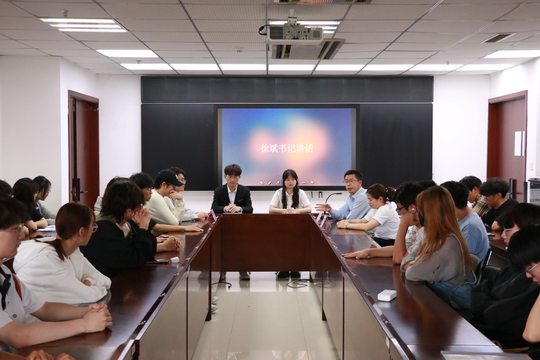 会议伊始,学习部尹妍琳同学就学院学风建设工作进行了汇报,详细介绍了学院在学生学风建设工作方面所采取的措施和取得的成效,她同时强调了诚信的重要性,并号召全体学生为建设诚信校园贡献自己的力量。随后,徐斌书记在会上发表了重要讲话,对学院的学风建设提出了具体要求:一要加强学风建设,优良的学风是提高教育质量的关键,每位同学要遵守学术规范,积极参与学习;二要深化诚信教育,诚信是学生成长成才的基石,全体学生要自觉将诚信原则融入到学习和生活中;三要建立和完善监督机制,开展定期的学风检查,确保各项学风建设措施得到有效执行。会议尾声,学习部管琪琪带领全体学生进行了诚信宣誓,各班级学生代表在诚信考试板进行签字。