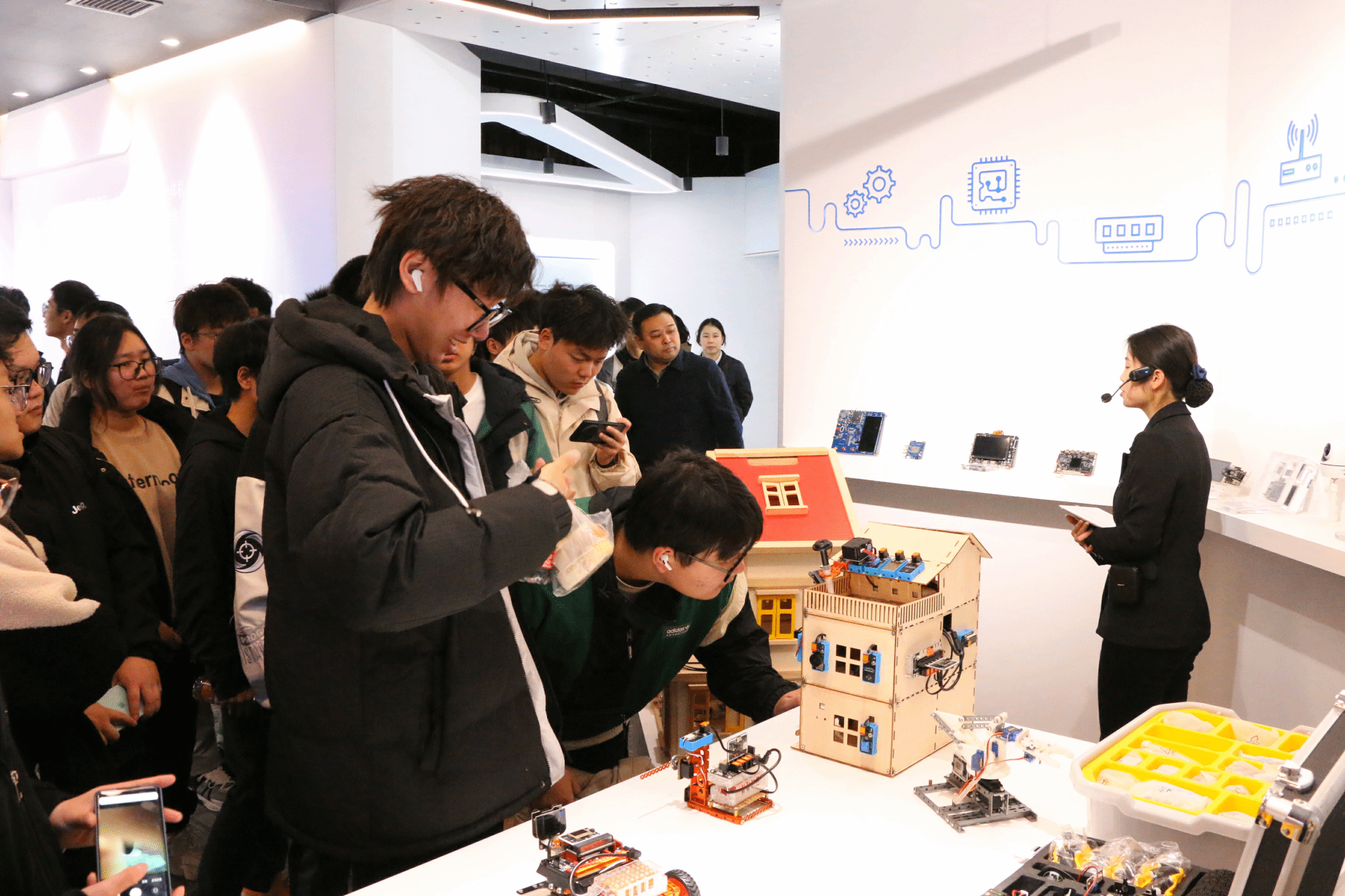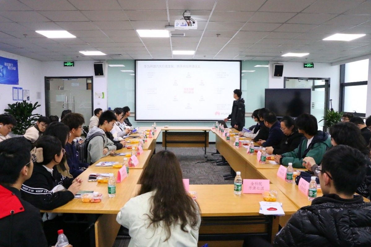 活动最后一站是中软国际-华为云创新中心,学生们首先参观了企业展区,主要了解到了创新中心在开源领域的人才培养模式、创新成果及市场应用。据了解,从2023年开始,中软国际-华为云创新中心为激活区域开源相关上下游产业和企业,凝聚行业共识,驱动软件谷开源新生态,引领“开源进谷”,打造具有“南软”特色的开源生态,创新中心依托华为20年深耕的开源项目技术创新和价值主张以及中软国际开源创新解决方案,联动开放原子开源基金会、开源社区等,举办开源技术沙龙、开源生态大会等多场人才培养活动,面向企业、高校及个人开发者,赋能开源治理以及创新中心在开源方向相关的实践。专家给学生们介绍了开源项目的技术架构、实现难点及解决方案,让学生对开源项目的实现有了更加深入的认识。学生与专家进行交流互动,学生与企业专家在交流互动中提出了关心的技术、就业上的问题,创新中心副总经理及技术专家给了详细的解答,学生了解了企业对开源人才的需求及培养方式之后能更加清晰自己的学习目标。