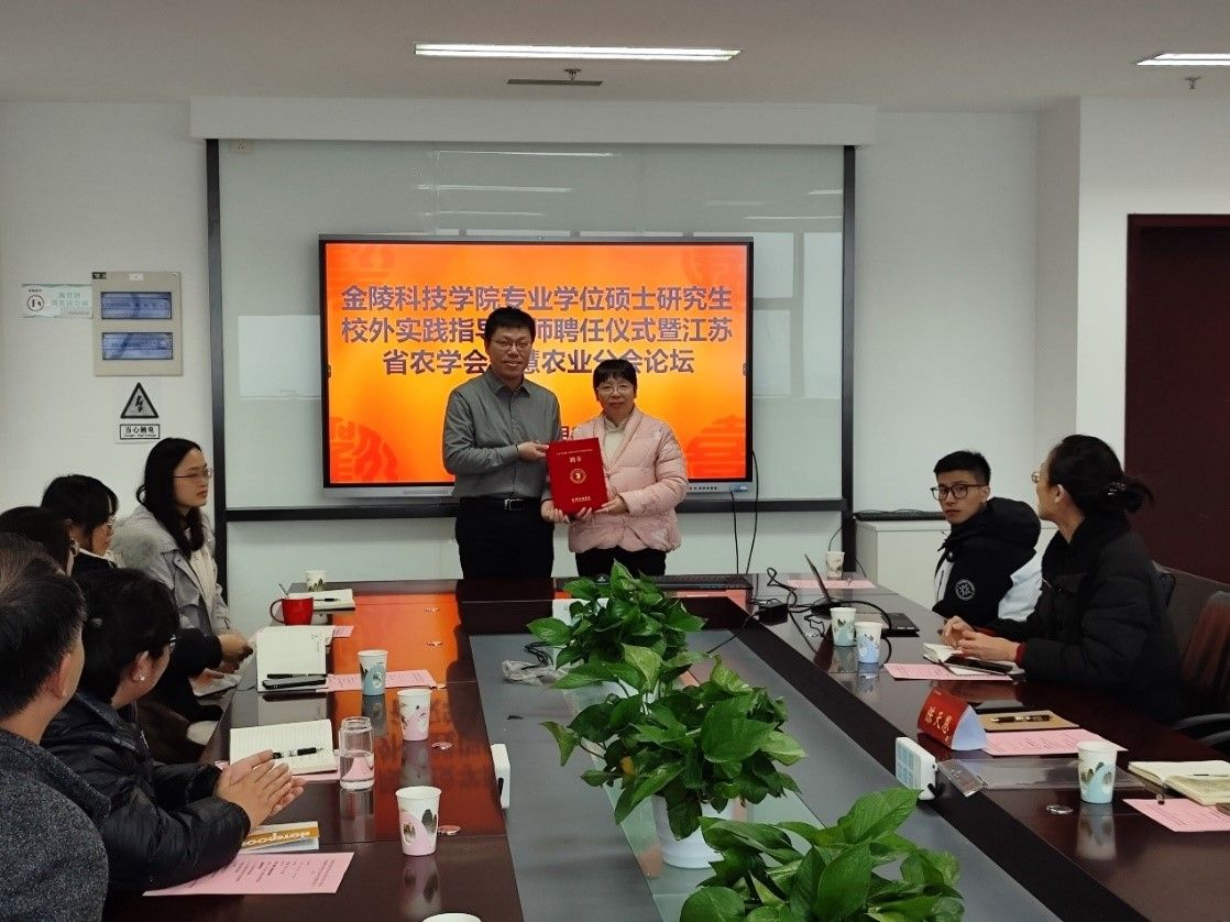 1月8日下午,必赢线路检测3003no1在科技楼1号楼2005会议室举行专业学位硕士研究生校外实践指导教师聘任仪式暨江苏省农学会智慧农业分会学术论坛,聘请农芯(南京)智慧农业研究院院长陈天恩研究员担任必赢官网业学位硕士研究生校外实践指导教师。聘任仪式由张燕副校长主持,并为陈天恩院长颁发聘任证书,必赢线路检测3003no1副院长游坤及智慧农业交叉学科团队相关教师和研究生参加了活动。