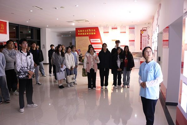 宣讲团成员们分批次带领新生们参观了展厅。他们详细介绍了学院雨花英烈精神展厅的布局和展品内容,通过生动的语言和丰富的历史背景知识,将烈士们的英勇事迹和革命精神娓娓道来。新生们听得入神,不时发出感叹和敬意。在宣讲过程中,他们不仅讲解了历史背景和烈士事迹,还引导新生们思考革命精神在当代社会的价值和意义。他们鼓励新生们要铭记历史,珍惜来之不易的幸福生活,努力学习专业知识,为实现中华民族伟大复兴的中国梦贡献自己的力量。在介绍过程中,五位宣讲员特别强调了学院在思政教育方面的特色和亮点。他们介绍了学院如何结合专业特点,将红色文化融入日常教学中,通过举办各类思政特色活动,如红文研学、宣讲、实践等,引导学生树立正确的世界观、人生观和价值观。同时,他们还分享了学院在推进文化自信自强、弘扬中国精神方面的积极探索和实践成果。