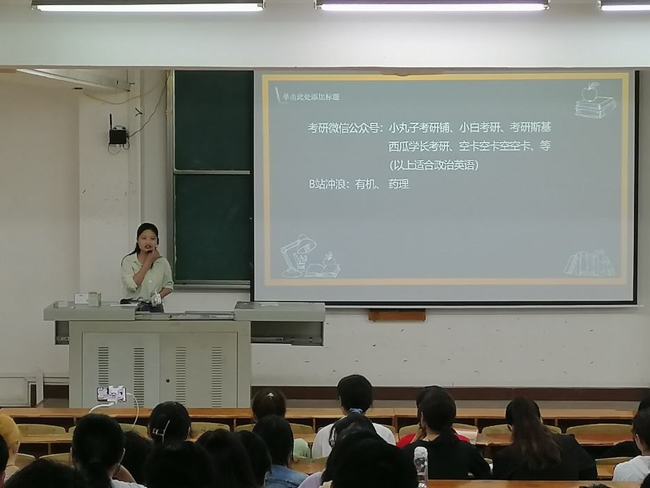 best365英国在线体育官网2021届毕业生共有22人考上研究生,此次分享会邀请到考上武汉理工大学的熊贝、沈阳药科大学的冯琪勋等六位同学进行经验分享。他们根据自身经验从择校、信息收集方法、备考经验和考研感受等方面为同学们带来详细的经验交流,引导同学们合理择校,同时告诉同学们应该如何应对考研疲倦期,如何疏导压力,以最佳状态迎接考试。为未来有考研想法的同学拨开迷雾,点亮考研道路的明灯。