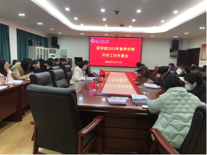 会上,院长闵清传达了学校《开学工作布置会》会议精神,总结回顾了学院2022年各方面所取得的成绩,并对学院2023年的教学、科研、学科建设、申硕、人才培养等重点工作做了周密部署。她强调教学科研要两手抓,要把立德树人作为根本任务,把教学工作作为中心工作;同时她突出要加强学科建设,大力发展药学学科,维持药学学科优势,力争在省级、国家级平台建设上有新的突破。