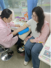 活动当天,虽艳阳高照,但前来献血的师生络绎不绝。在志愿者们的组织下,师生们按顺序进行了领表登记、血型测定、抽血和观察休息。在工作人员的讲解和鼓励下,不少同学们也克服恐惧,力所能及献出鲜血,处理创口之后,由志愿者带到休息区,每人赠送一份糖水和点心以及证书,同时询问并观察献血者身体恢复情况,整场活动有条不紊地进行着。遗憾的是,有不少同学因个人身体等原因这次不能献血,纷纷表示下次一定积极参加献血及其他志愿服务活动。