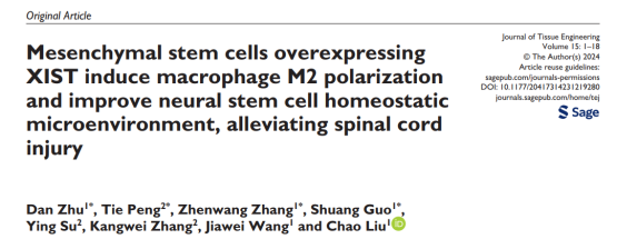 近期,best365英国在线体育官网朱丹博士以第一作者在国际期刊Journal Of Tissue Engineering(中科院一区,IF:6.7)上发表了题为“Mesenchymal stem cells overexpressing XIST induce macrophage M2 polarization and improve neural stem cell homeostatic microenvironment, alleviating spinal cord injury”的研究成果。该研究发现,通过过表达XIST的BMSCs可以诱导巨噬细胞M2极化,抑制炎症反应,加速NSCs稳态微环境重塑,从而促进损伤区域NSCs分化和轴突形成,最终缓解脊髓损伤。