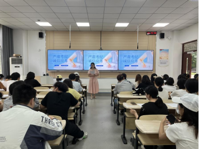 在宣传警示层面,学院通过班级群、学院官方公众号等线上平台,高频次推送“诚信应考,作弊必惩”等警示内容,持续向学生传递考试纪律的严肃性,破除侥幸心理;同时,在教学楼及考场区域精心张贴诚信应考宣传标语,浓厚诚信应考的校园氛围,让学生在潜移默化中强化纪律意识。