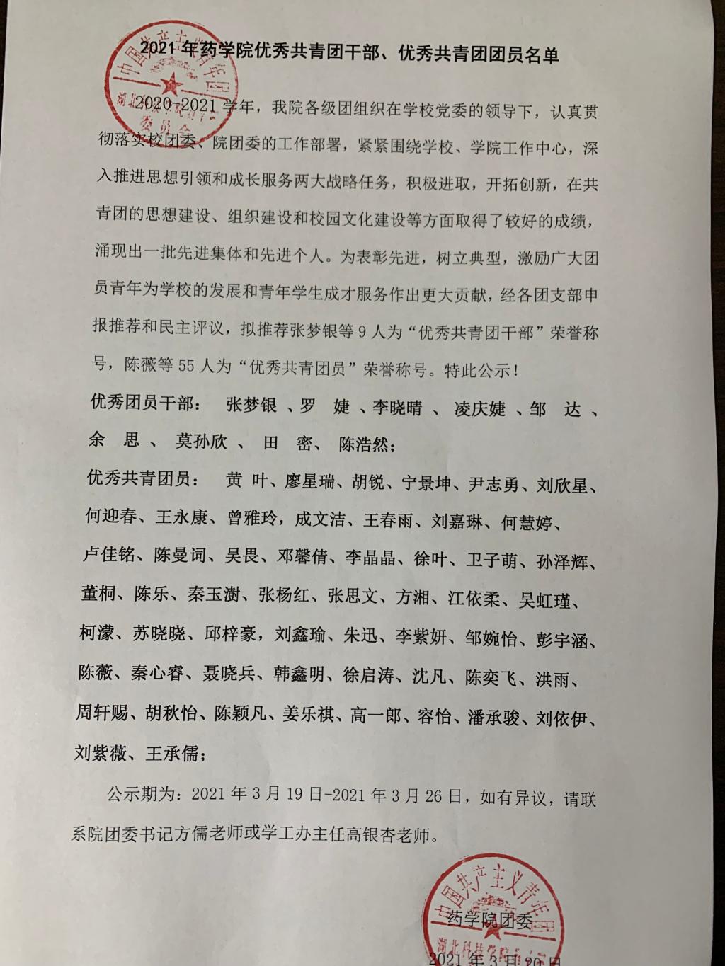 2021年best365英国在线体育官网“五四”优秀共青团干部、优秀共青团员名单