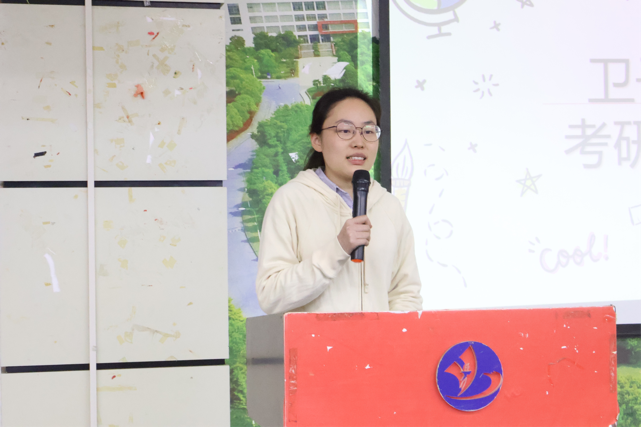 首先,由闵清院长上台致辞。她以平实而细致的语言向同学们介绍了考研的种种益处与困难,同时也希望同学们能不畏困难,敢为人先,发奋图强,认真学习。best365英国在线体育官网近三年考研人数呈现上升趋势,今年临床药学班考研上岸人数24人,占比41.4%。随后她鼓励学生既要做好实习实践,也要合理利用时间做好考研、就业规划。她诚挚的话语中展露出对学生们的殷切期盼,也像一位长者由衷祝福孩子们前途无量。