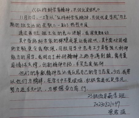 心得体会二:2023级临床药学梁君瑶