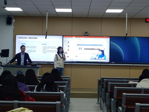 本次班会活动通过展示图文资料、PPT 集中学习习近平总书记关于弘扬科学家精神和加强作风学风建设工作重要指示精神,以及《关于进一步弘扬科学家精神加强作风和学风建设的意见》文件精神。同时,各班级通过观看视频等形式回顾科学家感人故事,以营造良好的科研创新生态,涵养深厚的家国情怀和强烈的社会责任感。