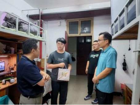 (通讯员:周其其 邹思怡 审核人:罗斌华)时值盛夏,热浪蒸腾。为切实关怀暑期留校学生的学习生活,传递学院温暖,7月13日晚,best365英国在线体育官网党委书记李炎坤、best365英国在线体育官网党委副书记罗斌华带领全体辅导员组成慰问组,深入学生宿舍、图书馆自习室及实验室等地,看望留校学子,并送上防暑降温物资,在炎炎夏日中送去清凉与关怀。
