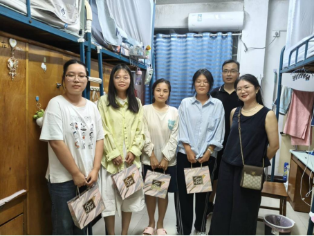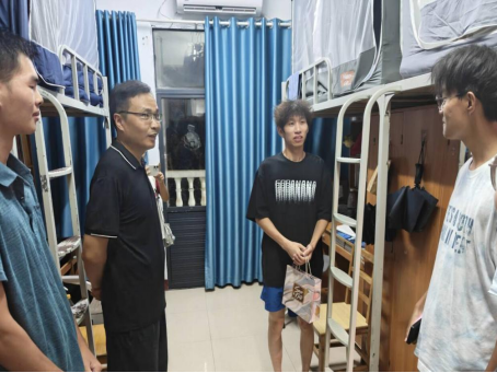 晚上六点半,慰问活动正式开始。慰问小组由两位老师和六名学生会干事组成,先后走访女生宿舍和男生宿舍,走访期间,老师们与同学们围坐一起,细致询问大家的家乡、住宿适应情况以及饮食起居是否习惯,并针对部分同学提出的课程压力与学习困惑,给予耐心地解答和建议。老师们结合自身经历,鼓励大家合理安排时间,循序渐进,逐步适应大学学习节奏。