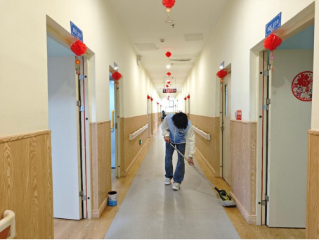 活动伊始,志愿者们有序分组,协助老人整理房间、打扫卫生。一部分同学仔细清理老人居室与洗衣房,整理物品、擦拭地面,营造整洁舒适的居住环境;另一部分同学则认真清洁公共区域,对过道扶手、微波炉等设施进行细致消毒,确保老人日常活动场所的卫生与安全。大家从细节入手,用辛勤劳动传递温暖,为后续活动营造了温馨和谐的氛围。