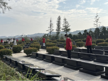 随后,同学们有序走进烈士墓区。面对整齐排列的墓碑,大家自发驻足凝视,轻声诵读烈士姓名,以静默表达对英烈的崇高敬意。不少同学表示,这样的实地教育让历史不再遥远,信仰更加坚定。