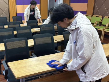 (青马学员认真打扫卫生)