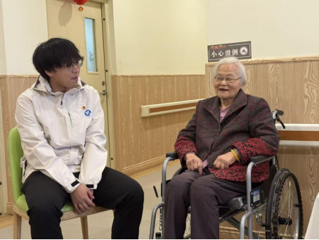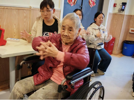 陪伴组的同学们则与老人们围坐交流,耐心倾听他们讲述往昔故事与人生经历。一句句问候,一次次点头,不仅拉近了彼此的距离,也在言语之间传递着暖意与尊重。同学们还准备了简单易学的手指操,一步步示范、一遍遍讲解,帮助老人们活动手指、放松身心。大家认真学习的模样,洋溢着轻松愉快的氛围。