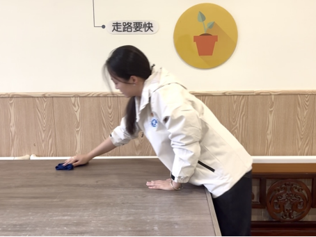 活动当天,志愿者们统一着装,精神饱满地抵达敬老院。在工作人员的安排下,大家迅速投入服务,分为清洁组与陪伴组,有序开展各项工作。清洁组同学细致擦拭窗台、桌椅,协助整理老人房间,过程中始终尊重老人意愿,轻手轻脚、不扰不乱,以真诚细致的劳动为老人们营造更加整洁舒适的居住环境。
