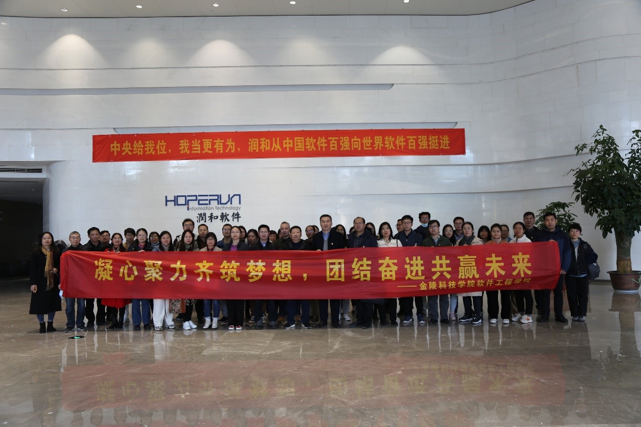 南京软件产业博览馆位于中国(南京)软件谷,是集中展示南京软件名城建设成就和软件产业发展情况的重要窗口。全馆总面积1800平方米,分为南京市馆和软件谷馆两个展区,分别介绍南京市和中国(南京)软件谷的软件产业发展情况,2021年7月入选南京市第二批党史学习教育基地名单。中国(南京)软件谷坚持“高端化、国际化、品牌化”的发展方向,牢牢抓住软件和信息服务业发展的重大契机,成为中国第一软件产业基地。学院教职工首先参观了南京软件产业博览馆,讲解员通过沙盘模型,让学院教职工了解到软件谷的全貌,南园西园北园全面发展,谷中不同产业集群代表企业,为国家科技创新与技术进步做出巨大贡献。随后,学院一行人来到谷内江苏润和软件股份有限公司参观,江苏润和软件股份有限公司成立于2006年,是中国软件科技产业的大型领军企业。学院教职工在润和软件的工作人员带领下参观了公司展厅,了解公司的发展历程和业务方向。