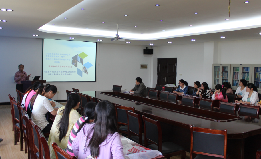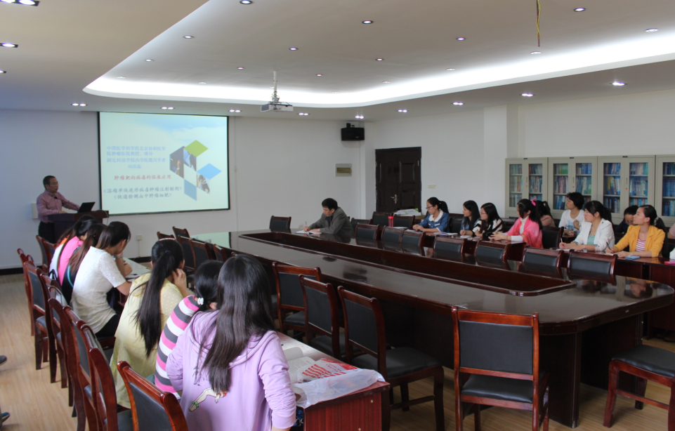 10月24日下午,湖北科技学院“揽月学者”刘滨磊教授应邀为师生们作了主题为“肿瘤靶向病毒的临床应用”的学术报告。多位相关专业领域的老师及研究生同学参加了讲座。